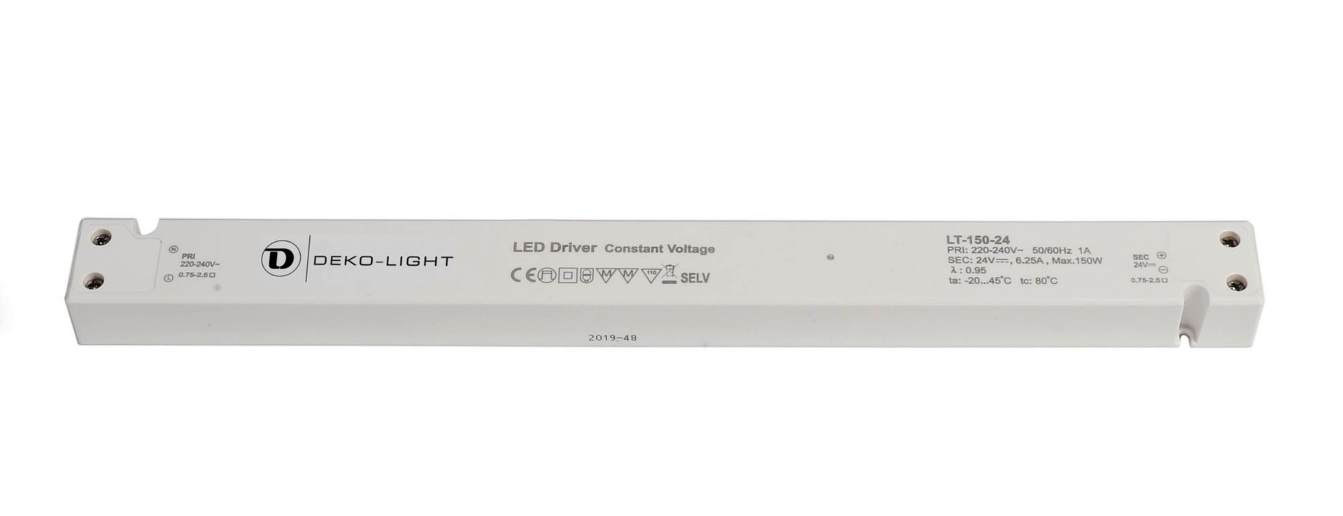 Deko-Light, Netzgerät (CV, DC), LONG-FLAT, CV, LT-150-24, Spannungskonstant, 150.0 W, Eingangsspannung: 220-240 V/AC, Ausgangsspannung: 24 V/DC, IP 20