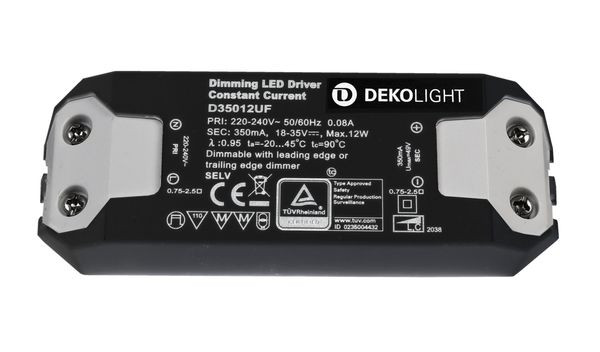 Deko-Light, Netzgerät (CC, DC) dimmbar, BASIC, DIM, CC, D350012UF/12W, Stromkonstant, Dimmbar: Ja, Phasenabschnittsdimmer, 6,3-12,0 W, Eingangsspannung: 220-240 V/AC, Bemessungsstrom: 80 mA, Ausgangsspannung: 18-35 V/DC, IP 20