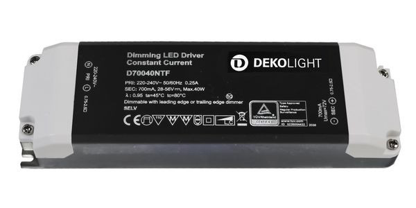 Deko-Light, Netzgerät (CC, DC) dimmbar, BASIC, DIM, CC, D70040NTF/40W, Stromkonstant, Dimmbar: Ja, Phasenabschnittsdimmer, 19,0-40,0 W, Eingangsspannung: 220-240 V/AC, Ausgangsspannung: 28-56 V/DC, IP 20