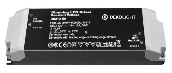 | Kurzbeschreibung | Deko-Light, Netzgerät (CV, DC) dimmbar, BASIC, DIM, CV 12 V 12-50 W, Spannungsko |