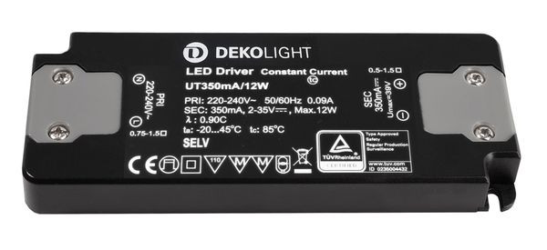 | Kurzbeschreibung | Deko-Light, Netzgerät (CC, DC), FLAT, CC, UT350mA/12W, Stromkonstant, 0,7-12,0 W |