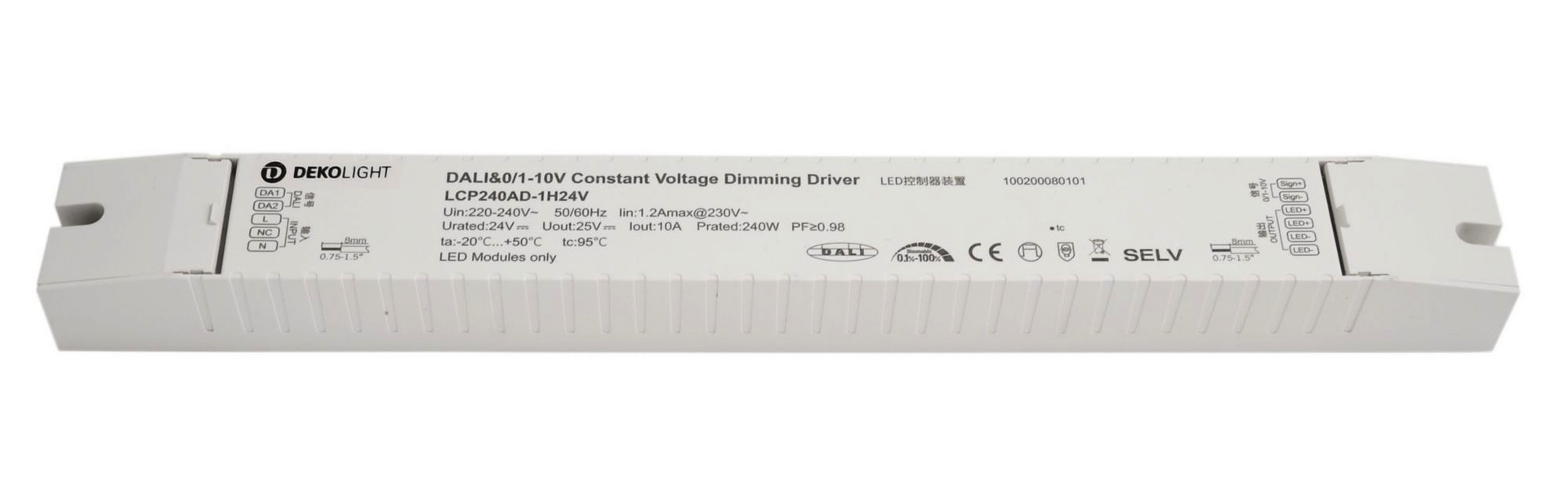 Deko-Light, Netzgerät (CV, DC) dimmbar, BASIC, DIM, CV, LCP240AD-1H24V, Spannungskonstant, Dimmbar: Ja, DALI 2.0 / DT6, 0-10 V, 1-10 V, Intelli Push-Dim, 240.0 W, Eingangsspannung: 220-240 V/AC, Ausgangsspannung: 24 V/DC, IP 20
