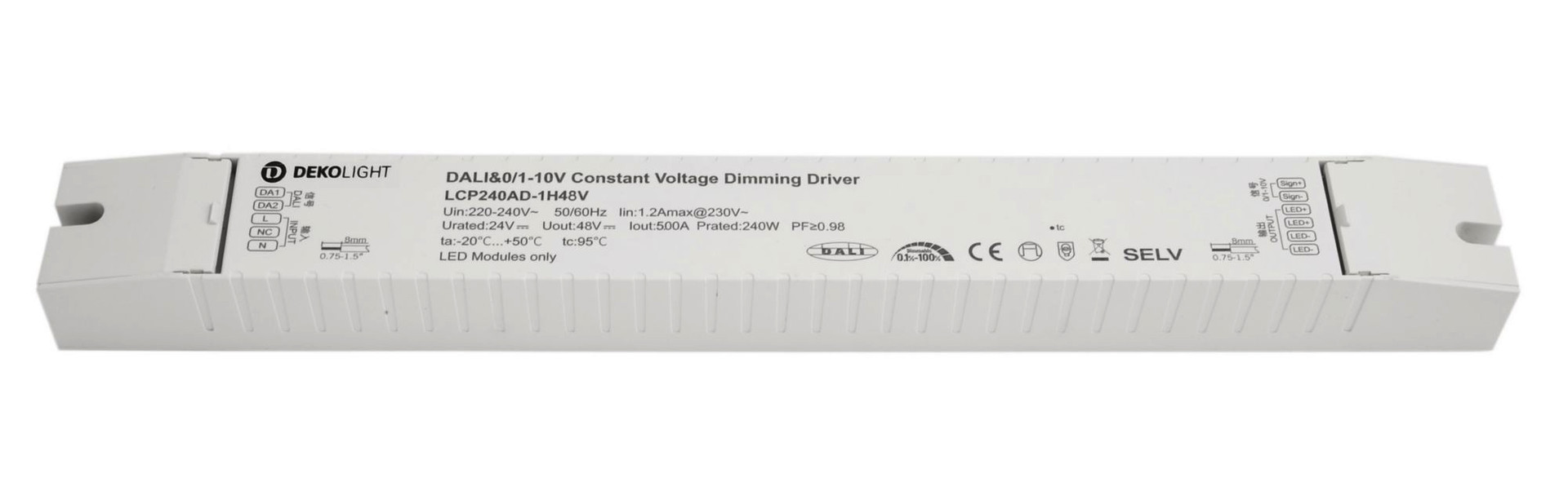 Deko-Light, Netzgerät (CV, DC) dimmbar, BASIC, DIM, CV, LCP240AD-1H48V, Spannungskonstant, Dimmbar: Ja, DALI 2.0 / DT6, 0-10 V, 1-10 V, Intelli Push-Dim, 240.0 W, Eingangsspannung: 220-240 V/AC, Ausgangsspannung: 48 V/DC, IP 20
