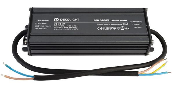 Deko-Light, Netzgerät (CV, DC), IP, CV, V6-75-24, Spannungskonstant, 75.0 W, Eingangsspannung: 100-240 V/AC, Bemessungsstrom: 1200 mA, Ausgangsspannung: 24 V/DC, IP 67