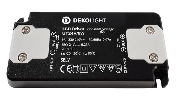 | Kurzbeschreibung | Deko-Light, Netzgerät (CV, DC), FLAT, CV, UT 24 V/6 W, Spannungskonstant, 6.0 W, |