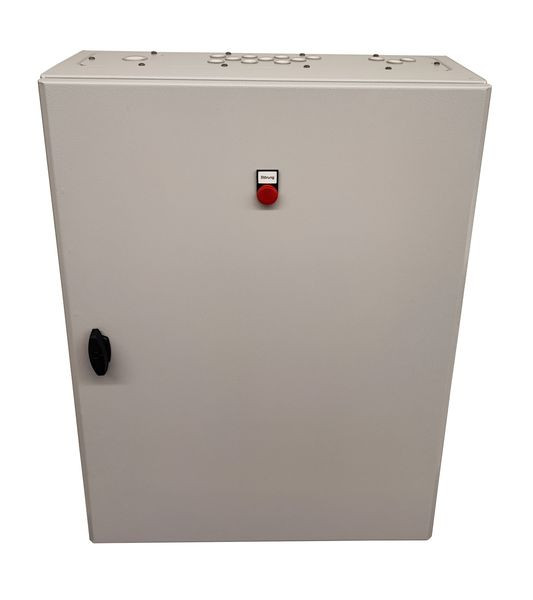 Steuerverteilung für Rohrbegleitheizungen bis zu 6 Heizkreisen mit DEVIreg 330. Leistung 12-18 KW AP-Isolierstoffgehäuse, Schutzart IP 65 bestückt mit sämtlichen Eingangssicherungen, FI- Schutzschalter Betriebsartenschalter für Dauer-, Hand- und Automatikbetrieb, Leerplatz für einen Thermostaten, Steuer- und Leistungsschütze, Heizkreissicherungen sowie Klemmen für Zu- und Abgangsleitungen. VDE- Mäßig verdrahtet. Anschlussspannung: 230 V