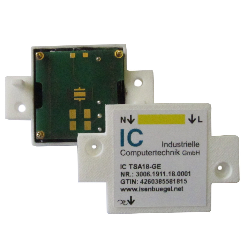 Das IC TSA18-GE Adaptionsmodul ist in der Kombination mit einem standard GIRA Taster ein dS ready fertiger digitalSTROM Taster. Das Modul wird mit zwei Schrauben am Taster fixiert. Eine Führungsnut verhindert ein seitenverkehrtes Adaptieren. Der elektrische Kontakt erfolgt über hochwertige federnde Kontaktstifte aus der Industrieautomation. L und N und der L1 für das zu dimmende Leuchtmittel werden über Federsteckklemmen angeschlossen. Auch in sehr vollen und flachen Unterputzdosen im Bestandsbau, ist die Umrüstung auf die dS Smart Home Technik sehr einfach möglich. Es ist keine Verdrahtung nötig und vermindert somit eventuelle Fehler. Im Neubau sind Einsparungen von 10 Minuten pro Unterputzdose für die Montage und Verdrahtung der dS Technik mit standard Tastern zu erreichen. Im Projektbau ist eine klare Trennung für die Abnahme zwischen der Installationstechnik und der Smart Home Systemtechnik möglich. Nur in Verbindung mit Artikel GIRA Nr.: 8618 00