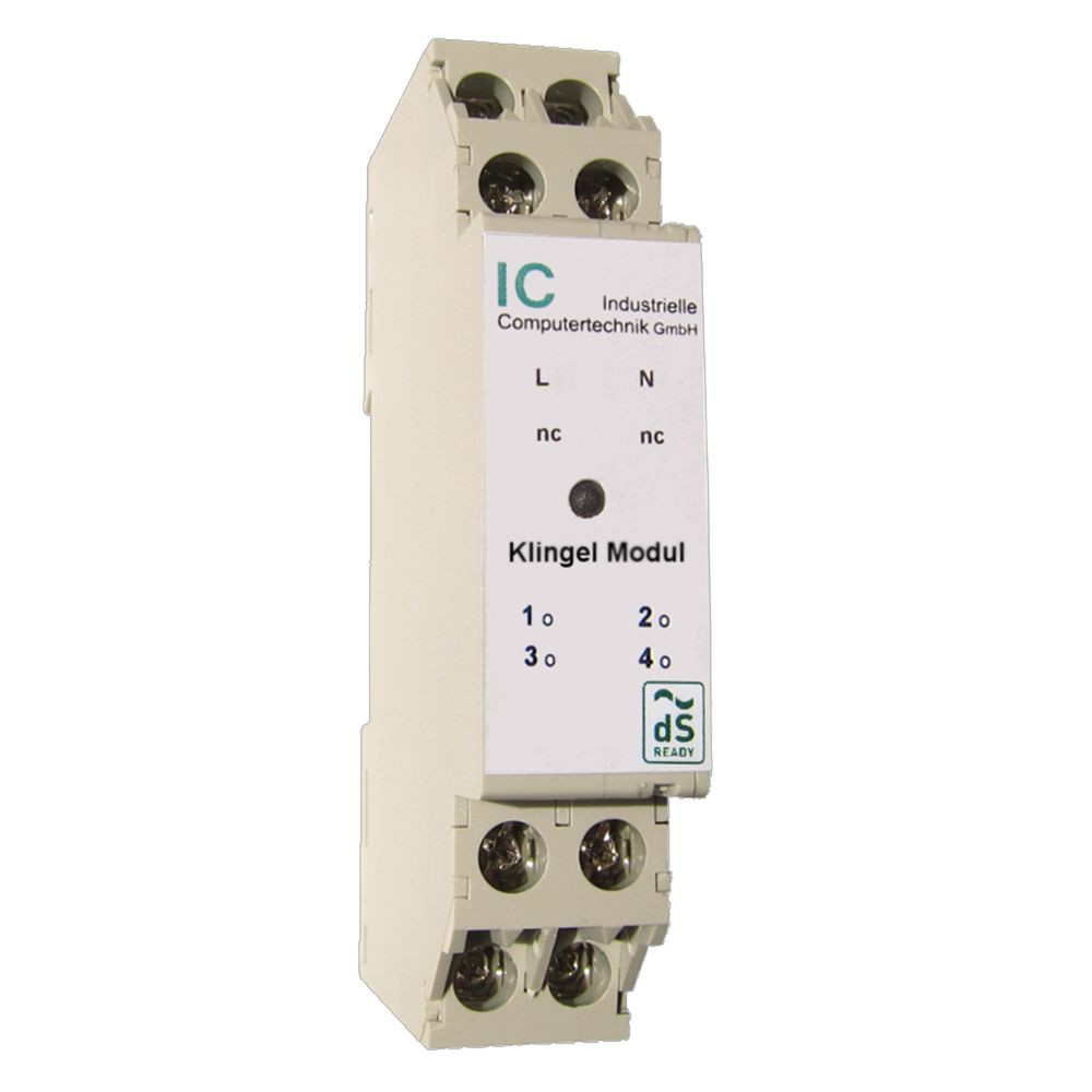 Das Modul in REG Bauform ist für 2 Klingel Schaltungen ausgelegt. Es bereitet die vorhandenen 8VAC oder 12VAC Klingelsignale auf, und sendet diese in das dS Netz.