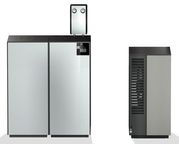 Heizungs-Wärmepumpe zum Heizen und Kühlen mit Inverter-Regelung bestehend aus einer innen aufgestellten Hydraulikeinheit und einem Außenmodul, die über eine Last-, Kommunikations- und Kältemittelleitung (Sonderzubehör) verbunden werden. Die Regelung passt über einen Inverter die Wärmepumpenleistung an den tatsächlichen Heiz- bzw. Warmwasserbedarf an. Radikal kleine Außeneinheit mit seitlichem Luftausblas zur wandnahen Aufstellung (0,5 m Wandabstand) und langsam laufendem, natürlich leisem EC-Eulenflügel-Ventilator. In der Hydraulikeinheit sind die folgenden Komponenten integriert und betriebsfertig verdrahtet: Integrierte Netzwerkverbindung zur optionalen Steuerung über Smart Device Master-Unit mit einfacher Bedienung über Touch-Display Pufferspeicher und doppelt differenzdruckloser Verteiler für störungsfreien Betrieb Rohrheizung, elektrisch umschaltbar, mit 2,4 oder 6 kW zur optionalen Unterstützung im Heizbetrieb Hocheffizienz-Umwälzpumpe für den Erzeuger- und Verbraucherkreis (EEl ? 0,2) Ausdehnungsgefäß mit 24 l und Sicherheitsventil Schmutzfänger, Durchfluss- und Drucksensor sowie Vor- und Rücklauffühler Außenfühler (Norm NTC-2) im Lieferumfang Optionale Erweiterungsmöglichkeiten: Nebenstehender Design-Warmwasserspeicher mit 220 l (XL) oder 355 l (XXL) Bivalenter Betrieb in Verbindung mit einem fossilen Wärmeerzeuger Regenerativer Betrieb (z. B. Holz oder Solarthermie) zusätzlicher Heizkreis