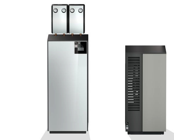 Heizungs-Wärmepumpe zum Heizen und Kühlen mit Inverter-Regelung bestehend aus einer innen aufgestellten Hydraulikeinheit und einem Außenmodul, die über eine Last-, Kommunikations- und Kältemittelleitung (Sonderzubehör) verbunden werden. Die Regelung passt über einen Inverter die Wärmepumpenleistung an den tatsächlichen Heiz- bzw. Warmwasserbedarf an. Radikal kleine Außeneinheit mit seitlichem Luftausblas zur wandnahen Aufstellung (0,5 m Wandabstand) und langsam laufendem, natürlich leisem EC-Eulenflügel-Ventilator. In der Hydraulikeinheit sind die folgenden Komponenten integriert und betriebsfertig verdrahtet: Integrierte Netzwerkverbindung zur optionalen Steuerung über Smart Device Master-Unit mit einfacher Bedienung über Touch-Display Pufferspeicher und doppelt differenzdruckloser Verteiler für störungsfreien Betrieb Rohrheizung, elektrisch umschaltbar, mit 2,4 oder 6 kW zur optionalen Unterstützung im Heizbetrieb Hocheffizienz-Umwälzpumpe für den Erzeuger- und Verbraucherkreis (EEl ? 0,2) Ausdehnungsgefäß mit 24 l und Sicherheitsventil Schmutzfänger, Durchfluss- und Drucksensor sowie Vor- und Rücklauffühler Außenfühler (Norm NTC-2) im Lieferumfang Optionale Erweiterungsmöglichkeiten: Nebenstehender Design-Warmwasserspeicher mit 220 l (XL) oder 355 l (XXL) Bivalenter Betrieb in Verbindung mit einem fossilen Wärmeerzeuger Regenerativer Betrieb (z. B. Holz oder Solarthermie) zusätzlicher Heizkreis