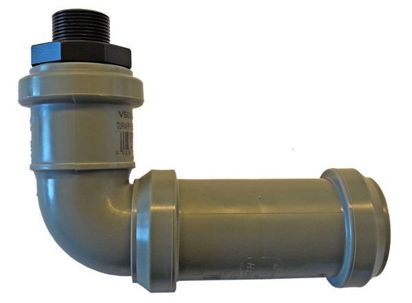 Kondensatsiphon mit Unterdrucksicherung und Trockenlaufschutz. Übergang zu HT DN40.