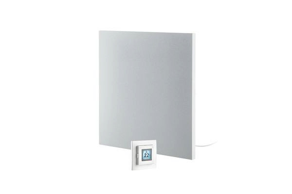 Infrarotheizung zur horizontalen und vertikalen Wandmontage oder Deckenmontage mittels mitgeliefertem Montagesatz. Qualitäts-Heizelement garantiert ausgeglichene Oberflächentemperatur. Leitungsführung für besonders gleichmäßige Oberflächentemperatur, Übertemperaturschutz, Anschlussleitung für Festanschluss ca. 1,3 m. Farbe: weiß. Regelung muss über einen externen Raumtemperaturregler erfolgen. Dieser muss zwingend den Kriterien der Ökodesign Richtlinie VO (EU) 2015/1188 entsprechen (Wochenprogramm und ein weiteres Feature wie z.B Adaptiven Start). Wir empfehlen den DTB-2R, der auch in das DIMPLEX Smart Climate System integrierbar ist. Im Set mit Raumtemperaturregler DTB 2R Einfach zu bedienende Regelung. Mit vielen Features zum Energiesparen und Einsatz im Bestand. Elektronischer, universal einsetzbarer Boden- und Raumthermostat (2-Punkt) mit Funkempfänger für Smart Climate System. Durch die benutzerfreundliche Oberfläche und das moderne Design passt der Thermostat in jede Umgebung und erfüllt die meisten Nutzungs- und Designvorlieben. Verfügt über integriertes Wochenprogram und einen sehr genauen Thermostat mit Standby-Stromverbrauch von weniger als 0,5 Watt. Ein einfaches Setup-Menü hilft bei allen Einstellungen. Hochauflösendes Farbdisplay mit Hintergrundfarbe als Statusanzeige: Rot für die Komforttemperatur, Grün für die Absenktemperatur und Blau für die Betriebsart Frostschutz. In Unterputzausführung für Elektro- oder Warmwasserheizsysteme (stromlos geschlossene Stellantriebe). Softwareseitige Umschaltmöglichkeit zur Verwendung als Raumtemperaturregler oder als Raumtemperaturregler mit Bodentemperaturbegrenzer. Schaltleistung ~230 V / 16 A, Temperatureinstellbereich Raum 7 - 40 °C, Boden fest 27°C, Einstellung in 1 K-Schritten. Fühler im Lieferumfang enthalten. Farbe weiß.