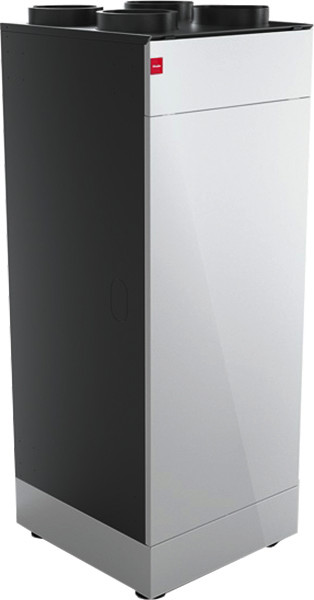 Wohnungslüftungsgerät mit Wärmerückgewinnung und Bypass zur kontrollierten Be- und Entlüftung von Wohnungen und Wohnhäusern mit einem zentralen Luftverteilsystem. Optimal geeignet für Neubau und Sanierungsmaßnahmen. Effiziente, konstantvolumenstromgeregelte EC-Ventilatoren mit Strömungsoptimierung. Wärmerückgewinnung aus der Abluft mit hocheffizientem Kreuzgegenstrom-Wärmetauscher. Automatischer Sommer-Bypass mit einstellbarer Schalttemperatur zur Nutzung kühler Nachtluft im Sommer durch Unterbrechung der Wärmerückgewinnung. Serienmäßig integrierte Feuerstätten-Sicherheitsfunktion für einen gemeinsamen Betrieb mit Feuerstätten und für erhöhten Komfort durch balancierte Luftmengen. Integriertes Bedientableau am Gerät. Automatikbetrieb über Luftqualitätssensoren in Abluft und Außenluft und über Zeitprogramme möglich. Filter ePM 10 für Außenluft und Abluft. Filterwechselanzeige im Display des Lüftungsgerätes mit einstellbarem Filterintervall. Filterwechsel sehr leicht vom Nutzer durchführbar. Das Gehäuse des Gerätes besteht aus EPP mit Blechverkleidung. Zugänglichkeit und Wartungsabstand nur von vorne. Luftkanalanschlüsse auf der Geräteoberseite, bodenstehende, wandhängende oder in-Schrank-Montage. Der Kondensatwasseranschluss befindet sich an der Unterseite des Lüftungsgerätes. Das Lüftungsgerät ist ohne weiteres Zubehör funktionsfähig.