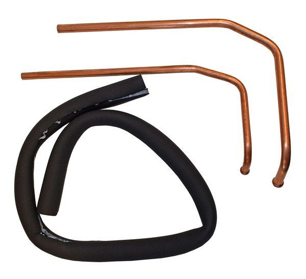 Rohrverlängerungen fertig vorkonfektioniert und vorgebogen zum Anschluss der Kältemittelleitungen an die Inneneinheit der Split-Luft/Wasser-Wärmepumpe System M 4-6 kW, Länge der Kupferrohre 454 mm (10x1) bzw. 522 mm (12x1). Lieferung inkl. Bördel und Dämmung.