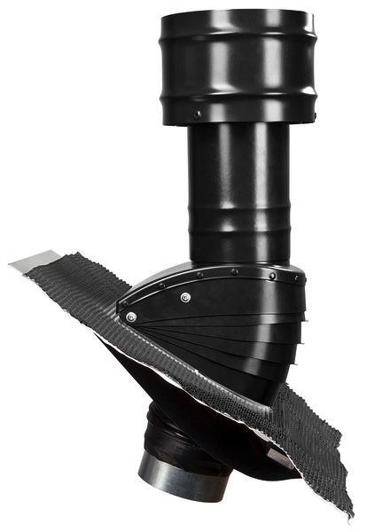 Steildachhaube aus Stahlblech, schwarz, für Außen- und Fortluft, an Dachneigungen 21° bis 55° anpassbar, inkl. wärmegedämmte Dachdurchführung