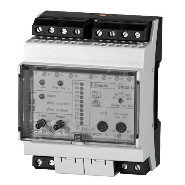 Differenzstrom-Überwachungsgeräte (RCM) erfassen zuverlässig Fehler- sowie Differenzströme und melden diese, ohne die Anlage abzuschalten. Sie werden dort eingesetzt, wo ein Abschalten der Anlage nicht möglich oder erwünscht ist. Diese Geräte ermöglichen einen schnellen Überblick über den Zustand der Anlage. Der aktuelle Differenzstrom wird in einer Balkenanzeige dargestellt. Die 10-fach LED-Anzeige vorne am Gerät zeigt Überschreitungen der Ansprechschwellen an. Ist eine Alarmierung gewünscht, können externe Meldeeinrichtungen angeschlossen werden. Die Geräte verfügen über eine einstellbare Ansprechverzögerung, so lässt sich ein unerwünschtes Melden von kurzzeitigen Differenzstromimpulsen (Gewitter, Schaltüberspannungen) vermeiden. Eine optimale Anlageneinbindung ermöglichen die Vielzahl verwendbarer Summenstromwandler für unterschiedliche Leiterquerschnitte und somit Bemessungsströme. Monitore mit der Differenzstromcharakteristik A erkennen sinusförmige Wechsel- und pulsierende Gleichfehlerströme. Geräte in Standardausführung sind für Stromkreise mit 230/400 V bei 50 Hz ausgelegt.