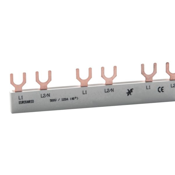 | Kurzbeschreibung | Gabelsammelschiene 2p, 7 TE, 63A, 500V (AC), ((L1, L2/N-Hi) x 3) |