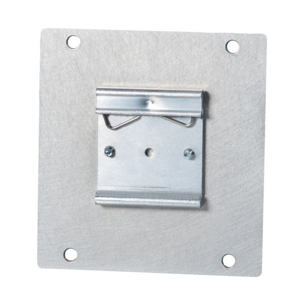 Zusatzkomponenten erleichtern die Montage. Der Tragschienenadapter ist ein Zubehörteil für die Differenzstrommonitore e.Guard RCM B und ermöglicht die Montage auf einer Tragschiene. Der Schienen-Halteclip und die Montageplatte werden mit den mitgelieferten Schrauben verbunden. Der montierte Tragschienenadapter wird auf der Rückseite des Differenzstrommonitors befestigt.