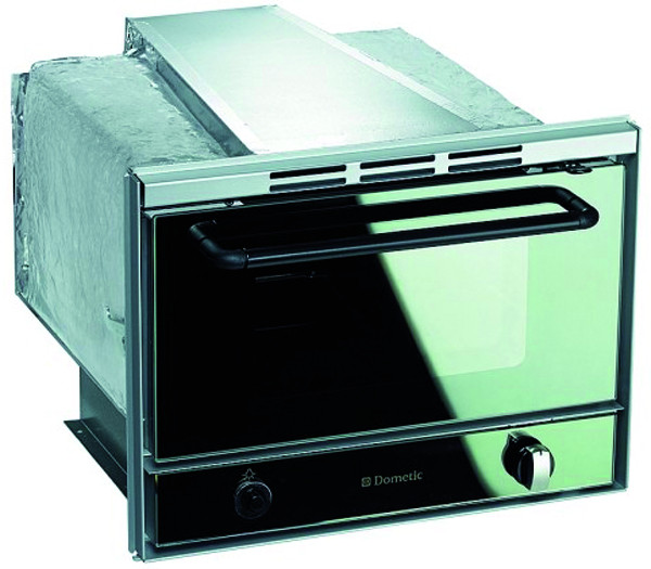 Einbaugasofen, elektronische Zündung, thermostatische Temperatursteuerung, Emaille-Backblech, Glastür, Edelstahlgehäuse, Gasverbrauch 116 g/h