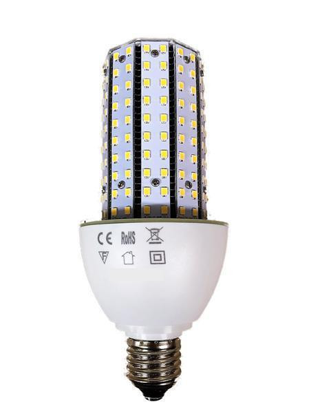 Wasserfeste Nanobeschichtung IP65 mit voll vergossenem Treiberbaustein Überspannungsschutz bis 4.000 V Keine Frühausfälle: SecureSolderConnect-Technology verhindert Haarrisse und kalte Lötstellen Einzigartig: Integrierte, temperaturabhängige Leistungsregulierung auf 50% zum Schutz vor Überhitzung AirFin-Cooling: 2,5-fache größere Kühlfläche als bei Vergleichsprodukten und bis zu 20% reduzierte Gewichtsbelastung am Lampensockel Leichter Austausch durch Retro-Fit Sockel E27 für gängige HQL/NAV-Lampen Lampe kann ohne Umbau an HQL Voschlatgeräten und auch direkt an 230V betrieben werden. NAV-Vorschaltgeräte müssen abgeklemmt werden Optimal angeordnete LEDs ermöglichen eine gleichmäßige Lichtverteilung Leuchtmitteleffizienz von bis zu 130 lm / W durch den Einsatz hochwertiger Lm80 zertifizierter LED's