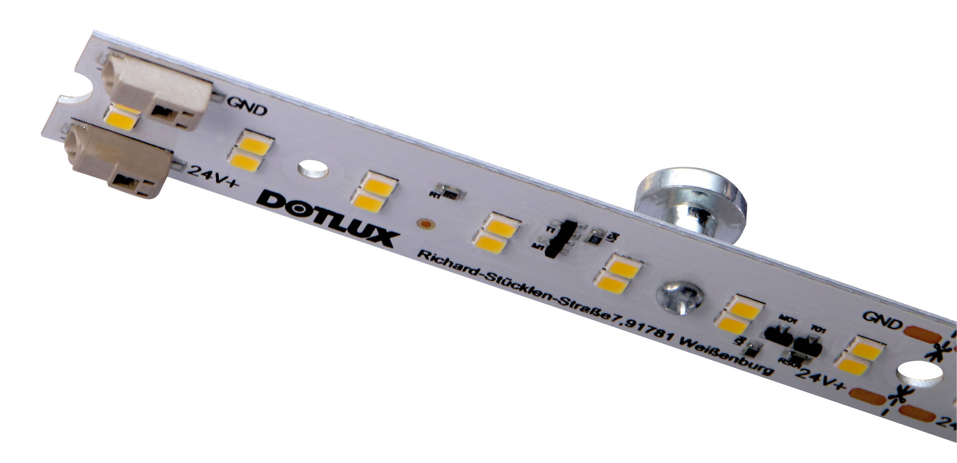 Universelles Leuchte-in-Leuchte System zum professionellen Ersatz in bestehenden Decken- und Wandleuchten Einfache Verdrahtung bei voller Flexibilität durch integrierte Konstantstromtreiber. Die Leuchte muss nur mit 24 V DC versorgt werden Sicherer Halt der Leuchte durch 2 vorinstallierte Neodymmagnete Durchverdrahtete Federdruckanschlussklemmen an beiden Enden Dimmbar über unsere 24 V PWM Netzteile z.B auch DALI Set bestehend aus 12 LED-Leuchten inkl. 20 passenden Steckverbindern In Reihenschaltung können bis zu 6 Leuchten je 7W bzw. 4 Leuchten mit je 15 W betrieben werden Individuell ablängbar alle 10 cm (je 2 Montagelöcher und zusätzliche Lötflächen pro 10cm) Zusätzlich stehen pro 50 cm Leuchte 10 Montagelöcher für eine alternative Befestigung zur Verfügung Für Einzeladerverdrahtung verwendbare Leitung (starrer Leiter 0,5-0,75 mm²) Inkl. Lösewerkzeug zum Lösen eines bereits eingesteckten Kabels am Steckklemmanschluss ESD Berührungsschutz bis 8kV für die komplette Leuchte Kann nur in Verpackungseinheiten bestellt werden, einzeln nicht lieferbar Mindestabnahme 12 Stück / Abnahmeintervall 12 Stück
