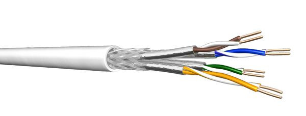Draka Installationskabel für den Innenbereich UC HOME Cat.7A SS22 S/FTP 4P LSHF 200BR. Kupfer-Datenkabel der Kategorie Kat 7A für die strukturierte Verkabelung mit einer Bandbreite von 1500 MHz. Mit Folienpaarschirmung und und hochwertiger Geflechtsabdeckung ist das Kabel doppelt geschirmt. Das 4-paarige Simplex Verlegekabel mit 8 Kupferadern AWG22ist für den Anschluss von Dosen, Patchfeldern und Modulen, auch mit LSA-Technik, zur Verlegung in Gebäuden, im Kanal und Unterputz geeignet und übertrifft die Anforderungen nach EN 50173-1, EN50288-9-1, ISO/IEC 11801, IEC 61156-5 und IEEE 802.3 af/at/bt. Der Mantel ist aus halogenfreiem, flammwidrigem Material nach IEC 60332-1, IEC 60332-3-24, IEC 60754-2, IEC 61034, EN 50399 und Eurobrandklasse Dca s1d1a1. Die Schirmung erfüllt mit einer Kopplungsdämpfung von 85 dB die Trennklasse D nach EN50174. Das Kabel ist zukunftssicher für alle Anwendungen nach Klasse C, D, E, EA, F und FA und geeignet zum Betrieb von PoE und PoE+ über eine Channellänge nach Klasse C, D, E, EA, F und FA bis 100m. Es ist geeignet für folgende Übertragungen: Telefonie, Ethernet, Fast Ethernet, Gigabit Ethernet und 10Gigabit Ethernet, 10BaseT, 100BaseT, 1000BaseT, 1GBase-T, 10GBaseT oder bis zu 10.000 MBit/s. Das Kabel hat folgende Zertifikate: GHMT PREMIUM Verification Program - PVP 3P-Certification-Programm NVP: 79 Cu-Zahl: 40,4 Farbe: weiß Aufmachung: 200 Box Artikelnummer: 60095153EAN: 4065624003000