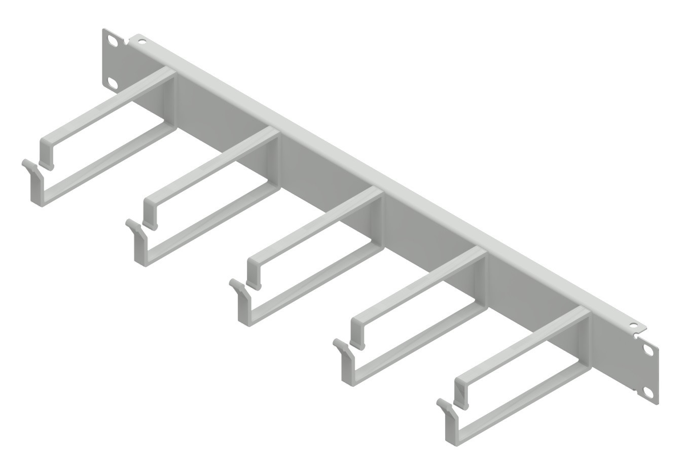 | Kurzbeschreibung | Rangierpanel 19'' 1HE 5 Metallbügel 130 mm RAL7035 |