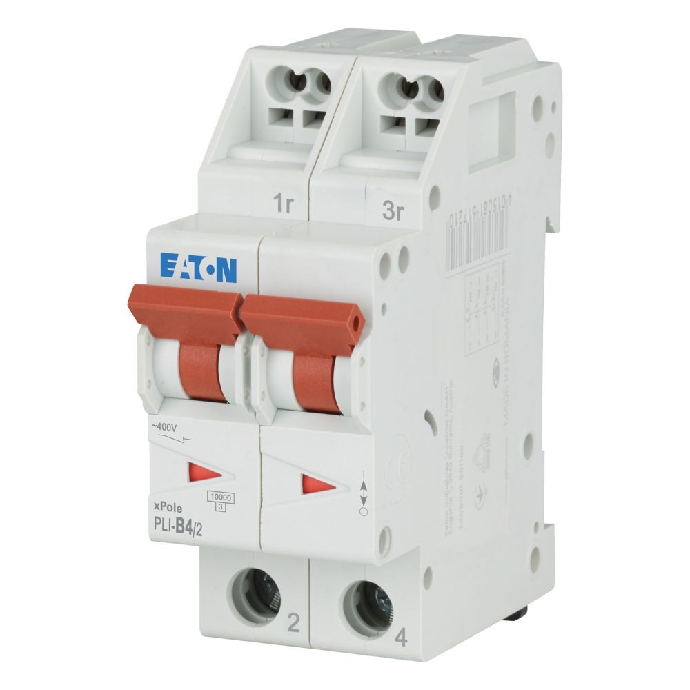Leitungsschutzschalter, PLI, 2-polig, Auslösecharakteristik: B, Bemessungsstrom Ein: 4 A, Bemessungsschaltvermögen nach IEC/EN 60898-1: 10 kA, Schaltgeräte für den Wohnungsbereich und kommerzielle Anwendungen