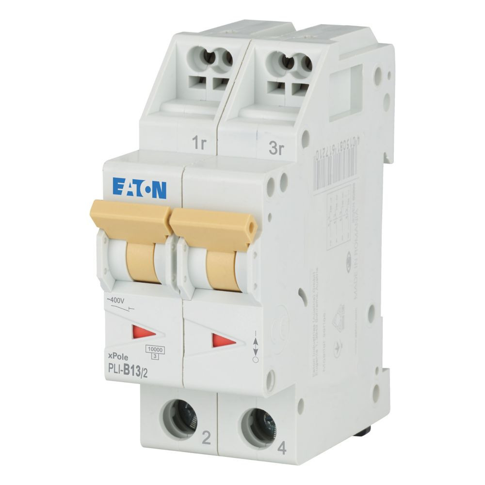 Leitungsschutzschalter, PLI, 2-polig, Auslösecharakteristik: B, Bemessungsstrom Ein: 13 A, Bemessungsschaltvermögen nach IEC/EN 60898-1: 10 kA, Schaltgeräte für den Wohnungsbereich und kommerzielle Anwendungen