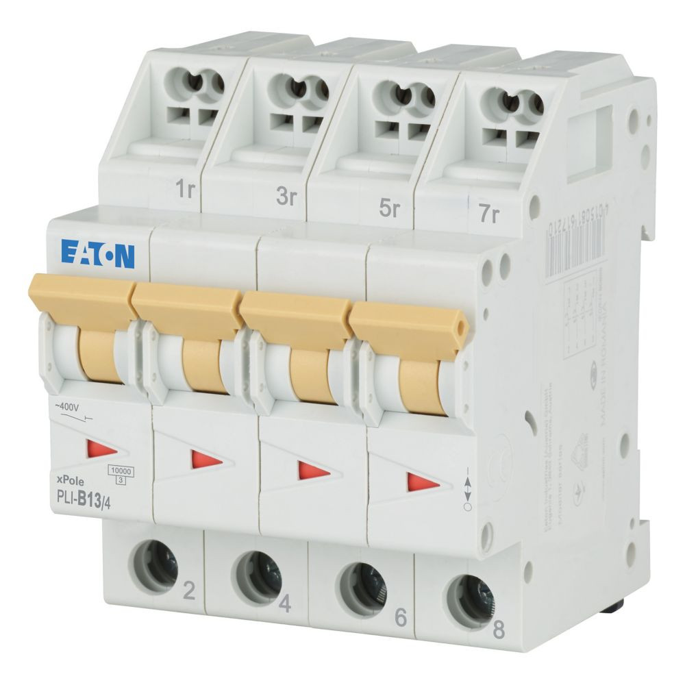 Leitungsschutzschalter, PLI, 4-polig, Auslösecharakteristik: B, Bemessungsstrom Ein: 13 A, Bemessungsschaltvermögen nach IEC/EN 60898-1: 10 kA, Schaltgeräte für den Wohnungsbereich und kommerzielle Anwendungen