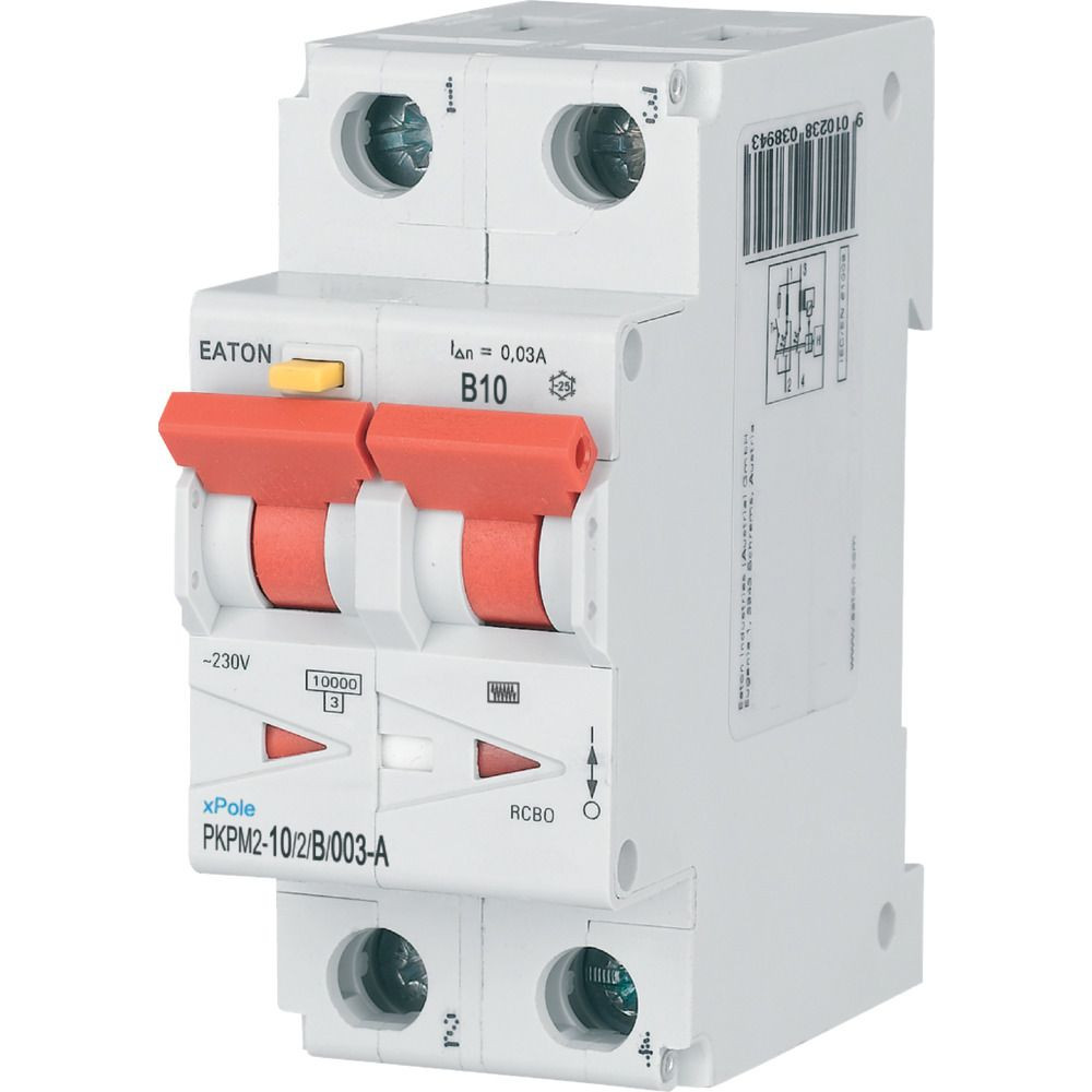 RCBO (Fehlerstromschutzschalter mit Überlastschutz), PKPM2, 2-polig, Bemessungsstrom In: 10 A, Bemessungsfehlerstrom I?N: 0,03 A, Bemessungsschaltvermögen nach IEC/EN 61009: 10 kA, Schaltgeräte für den Wohnungsbereich und kommerzielle Anwendungen