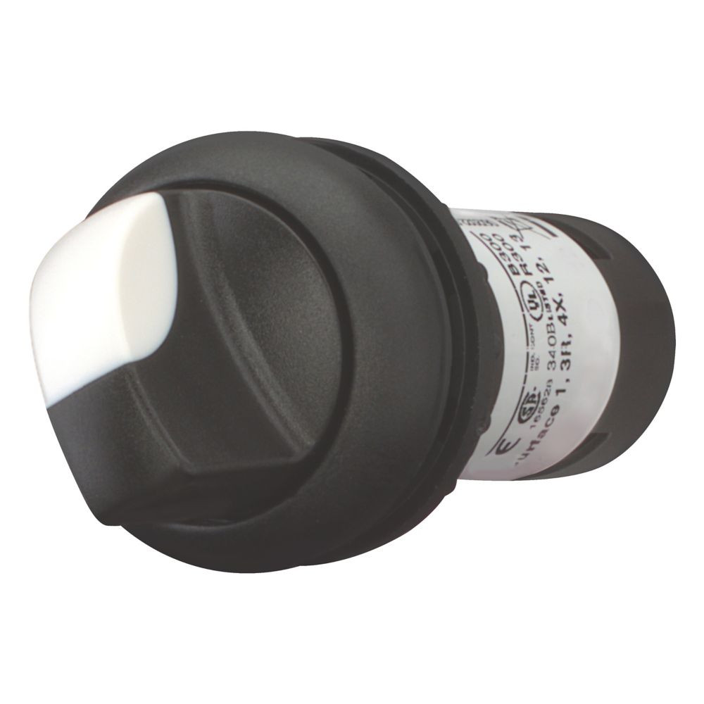Umschalter, Sortiment: RMQ Compact, Komplettgerät, Bauform: mit Knebelgriff, rastend, Schraubanschluss, 2 Stellungen (V-Stellung), Schutzart: IP65, Frontring Schwarz, Anbindung an SmartWire-DT: nein, 2 Ö, = Sicherheitsfunktion, durch Zwangsöffnung nach IEC/EN 60947-5-1, Weg des Bedienteils und Betätigungskraft nach DIN EN 60947-5-1, K.5.4.1: mm 4,65, Weg des Bedienteils und Betätigungskraft nach DIN EN 60947-5-1, K.5.4.1 Maximaler Weg: 5,7 mm, Weg des Bedienteils und Betätigungskraft nach DIN EN 60947-5-1, K.5.4.1 Mindestkraft für Zwangsöffnung: N 30, Zwangsöffnung (ZW): ja, Normen und Bestimmungen: IEC/EN 60947-5-1, VDE 0660