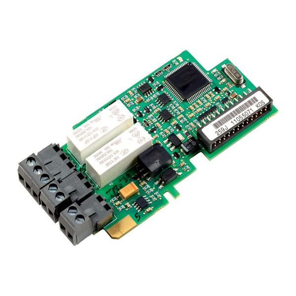 Ausgangserweiterung, Untersortiment: Ausgangserweiterung, Beschreibung: Das Erweiterungsmodul wird in den Frequenzumrichter gesteckt., 1 Relais-Ausgang (NO/NC), 1 Relais-Ausgang (NO), 1 Thermistoreingang, verwendbar für: SVX, SPX