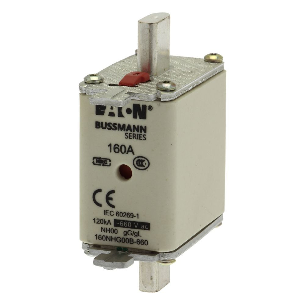 | Kurzbeschreibung | Sicherungseinsatz, Niederspannung, 160 A, AC 660 V, NH00, gL/gG, IEC, Doppelkennmelder, spannungsführende Grifflasche |
