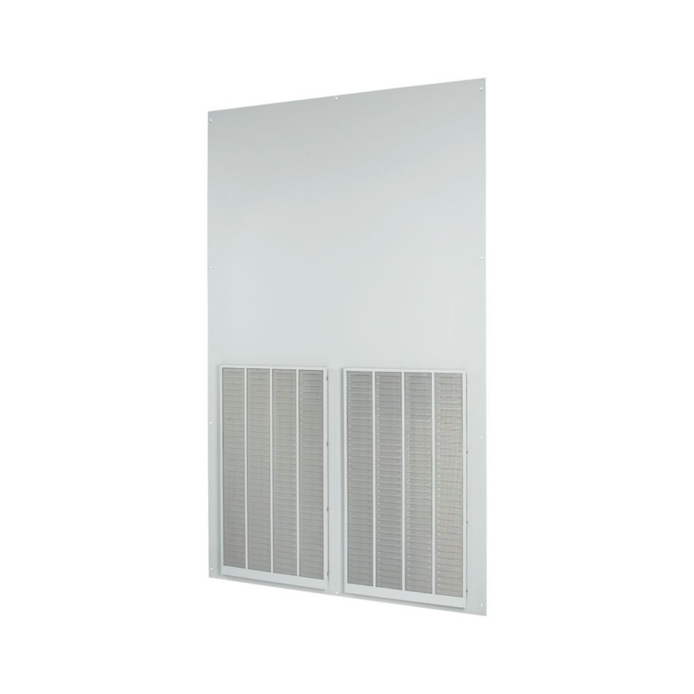 Rückwand, Lüftungsöffnung, IP42, Stahlblech, pulverbeschichtet, RAL 7035, mit wechselbarem Lüftungsgitter, Breite 1200mm