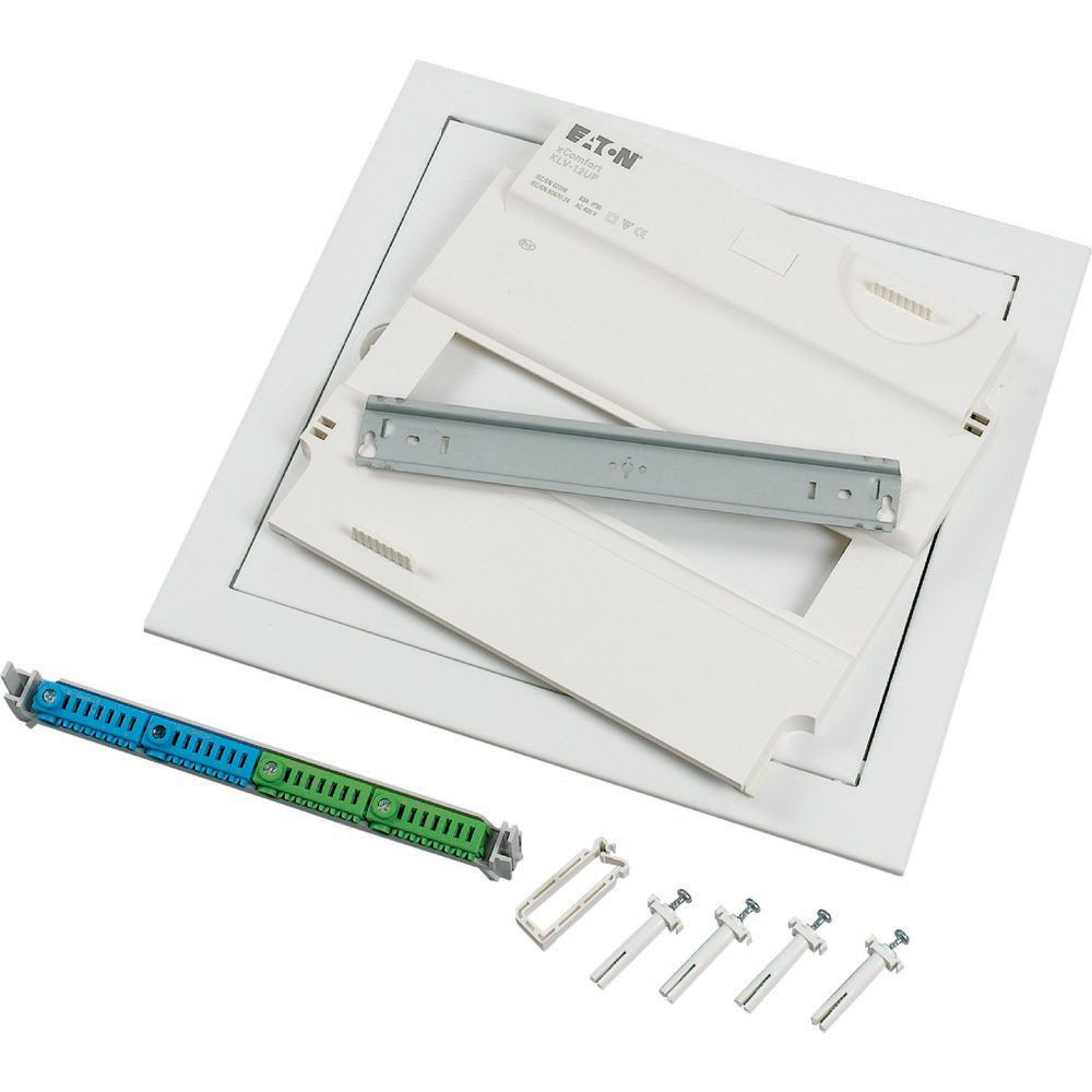 Lieferumfang für Projekte: Unterputz-Ausbausatz für Kleinverteiler KLV der zweiten Generation, flaches Türrahmen-Design, optionale Tür mit Rahmen in RAL-Wunschfarbe, im Lieferumfang enthalten: Gerätehalter, Frontabdeckung, Null- und Schutzleiterklemmen mit KSK Steck-Klemmtechnik, 3D-Putzausgleich mit bis zu 18 mm Tiefenausgleich, Kabelbinder, Montageanleitung, Beschriftungsbogen. Normen: Vollständiger Stromverteiler gemäß IEC/EN 60670-24, DIN 43871, IEC/EN 62208 und, entsprechend, zugelassen für Stromverteiler gemäß der Definition in IEC/EN 61439-3.