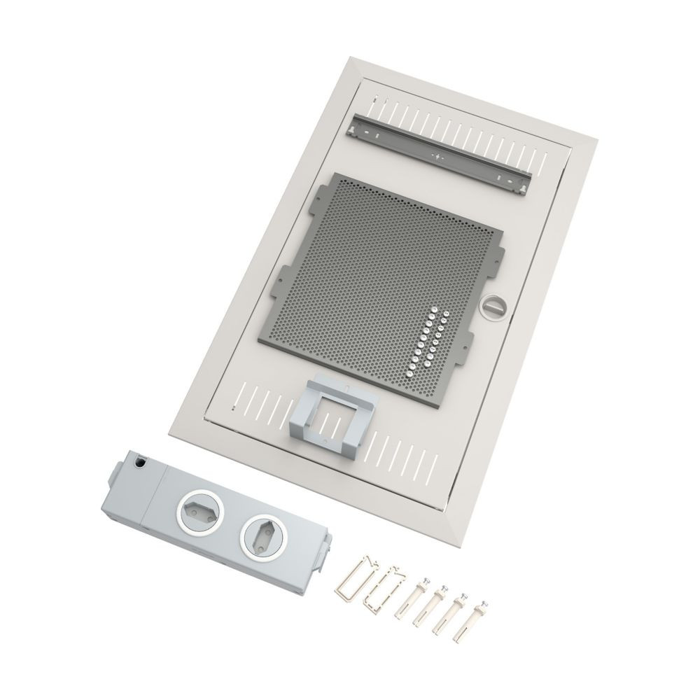 Lieferumfang für Projekte: Ausbausatz für Medienverteiler KLV der zweiten Generation, Stahlblechtür mit Belüftungsöffnungen, flaches Türrahmen-Design, optionale Tür mit Rahmen in RAL-Wunschfarbe. im Lieferumfang enthalten: Eine Tragschiene, Mikroperforierte Montageplatte, 1x Geräteträger, 2x einfache Steckdose mit Steckeinheiten und Euro2-Adapter, 3D-Putzausgleich mit bis zu 18 mm Tiefenausgleich, Kabelbinder, Montageanleitung. Normen: Zugelassen für Multimedia-Anwendungen in GP Universal-Gehäuse gemäß IE/EN 60670-24. Schutzklasse I