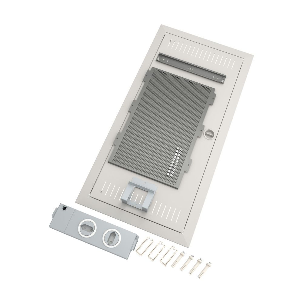 Lieferumfang für Projekte: Ausbausatz für Medienverteiler KLV der zweiten Generation, Stahlblechtür mit Belüftungsöffnungen, flaches Türrahmen-Design, optionale Tür mit Rahmen in RAL-Wunschfarbe. im Lieferumfang enthalten: Eine Tragschiene, Mikroperforierte Montageplatte, 1x Geräteträger, 2x einfache Steckdose mit Steckeinheiten und Euro2-Adapter, 3D-Putzausgleich mit bis zu 18 mm Tiefenausgleich, Kabelbinder, Montageanleitung. Normen: Zugelassen für Multimedia-Anwendungen in GP Universal-Gehäuse gemäß IE/EN 60670-24. Schutzklasse I
