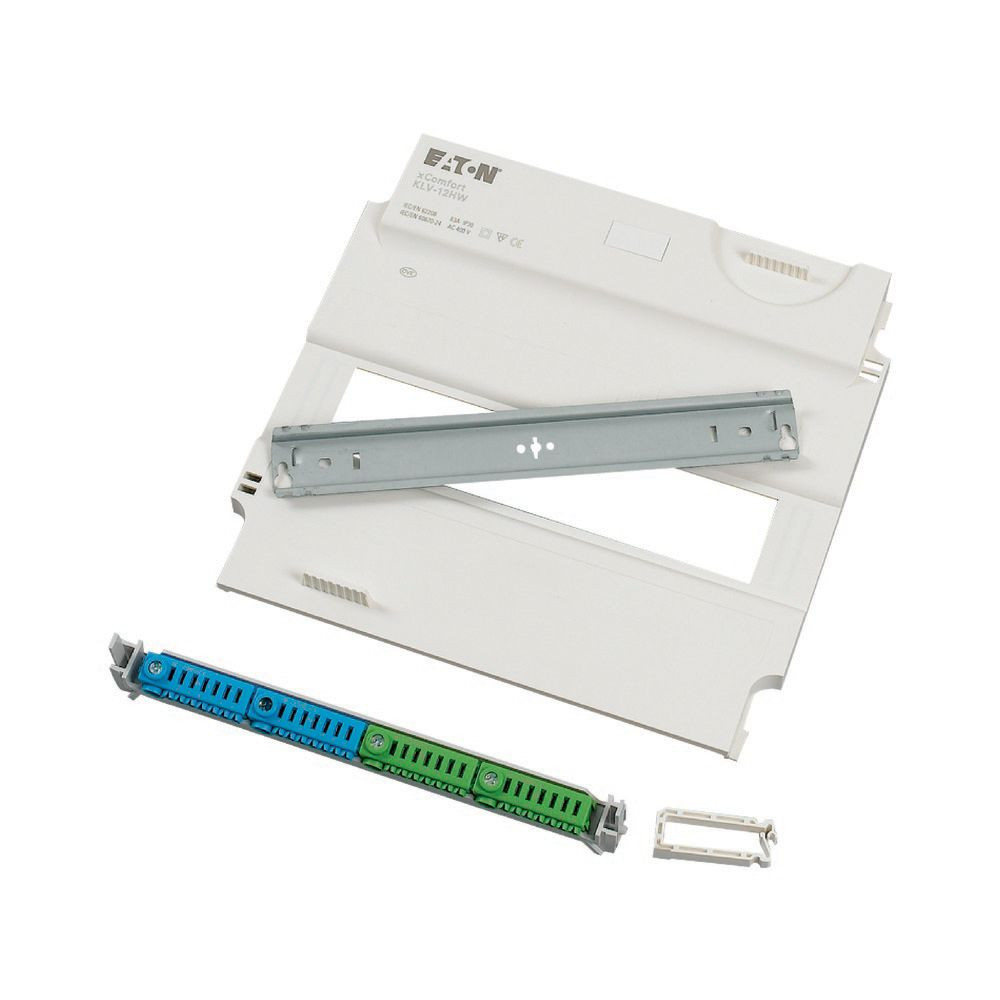 Lieferumfang für Projekte: Interieur-Hohlwand-Ausbausatz für Kleinverteiler KLV der zweiten Generation, im Lieferumfang enthalten: Gerätehalter, Frontabdeckung, Null- und Schutzleiterklemmen mit KSK Steck-Klemmtechnik, Kabelbinder, Montageanleitung, Beschriftungsbogen. Normen: Vollständiger Stromverteiler gemäß IEC/EN 60670-24, DIN 43871, IEC/EN 62208 und, entsprechend, zugelassen für Stromverteiler gemäß der Definition in IEC/EN 61439-3.