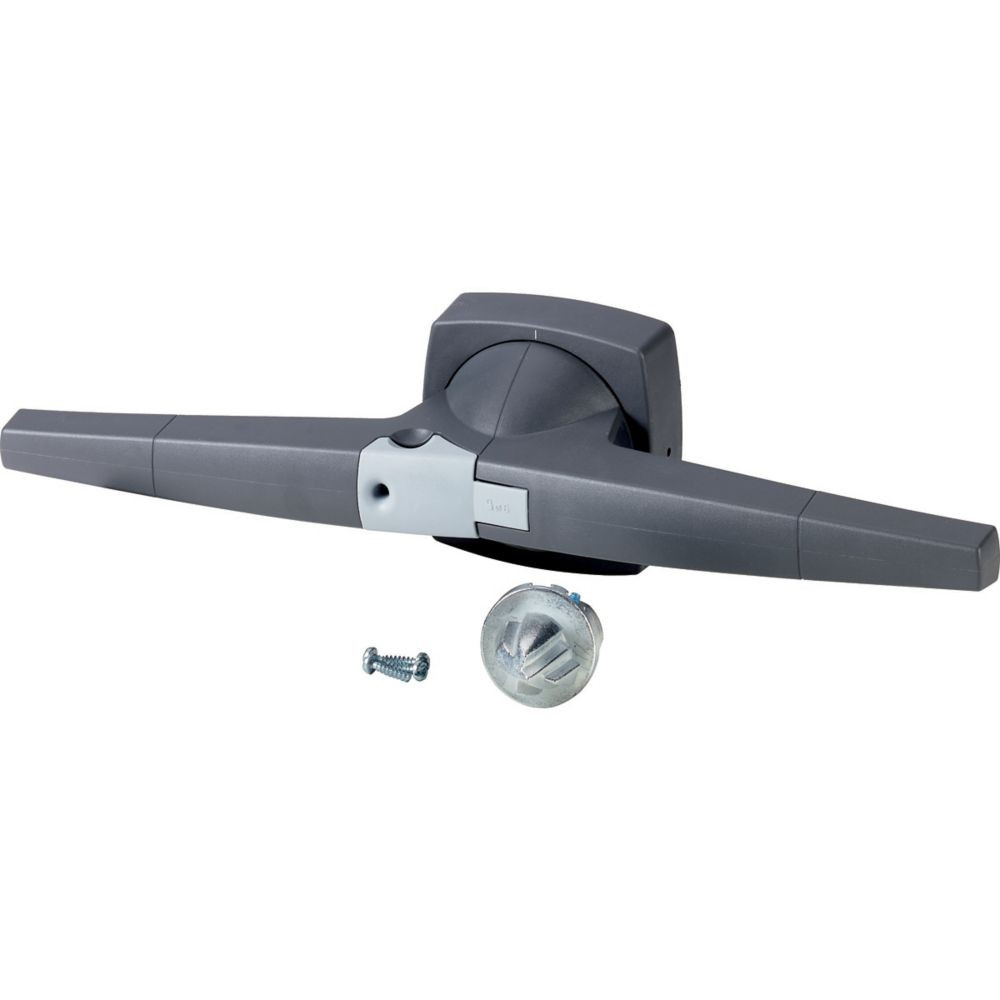 Knebel, Grundfunktion: Drehgriffe, Griff komplett mit Türkupplung, Achsdurchmesser: 14 x 14, verwendbar für: DMV630N, DMV1000N, verwendbar für: Türeinbau, Information zum Lieferumfang: mit Bügelschloss, Schaltwinkel: 90 °