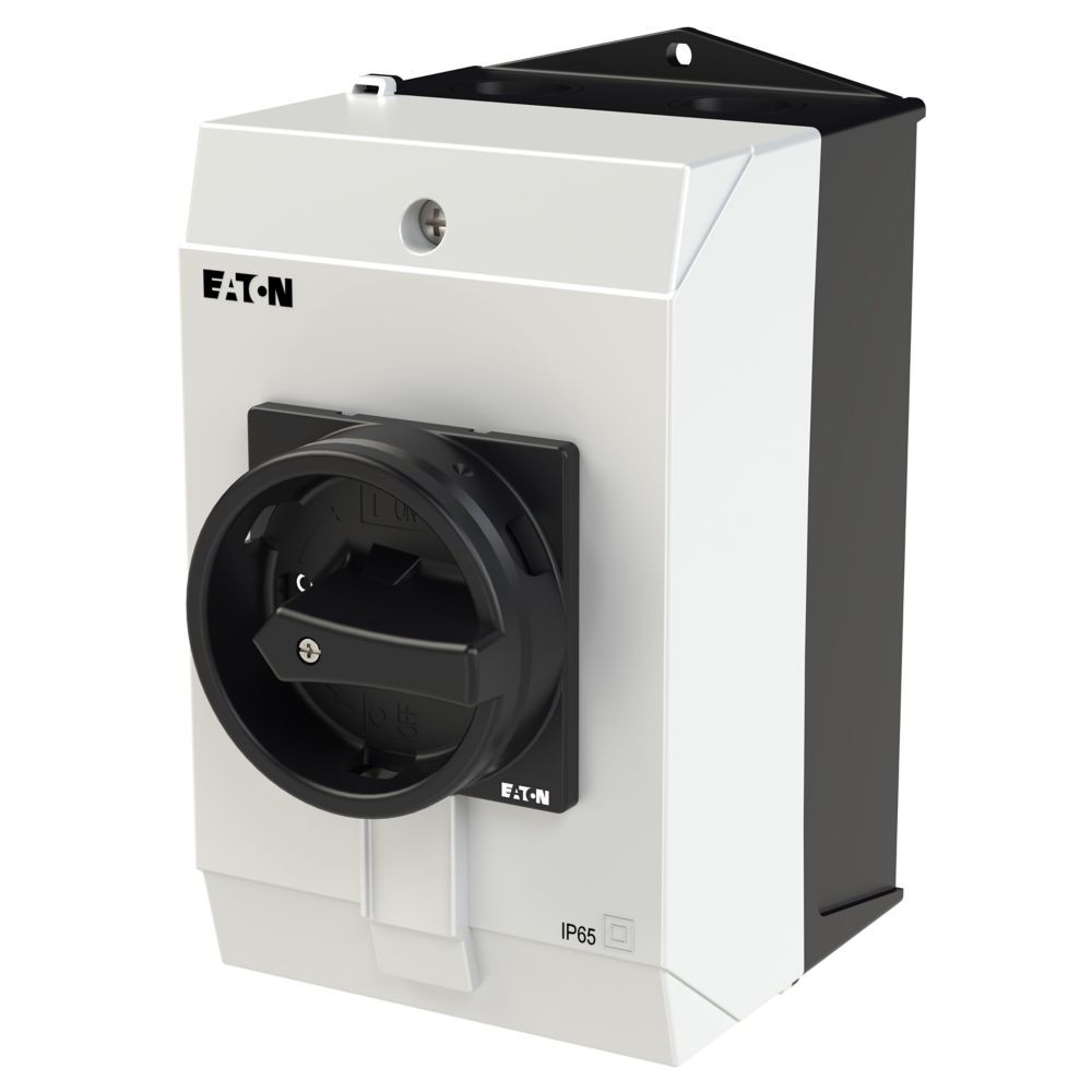 Hauptschalter, Sortiment: Hauptschalter, Wartungsschalter, Reparaturschalter, Typkenner: T0, Stopp-Funktion: STOPP-Funktion, mit schwarzem Drehgriff und Sperrkranz, Hinweis: Hartspiegelausführung, mit Montageblechschirm, 3-polig, Verriegelungsvorrichtung: In der Position 0 (Aus) verriegelbar, Schutzart: IP65, Bauform: Oberflächenmontage, Schaltwinkel: 90 °, Bemessungsbetriebsleistung AC-23A, 50 - 60 Hz 400 V: P = 5,5 kW, Bemessungsdauerstrom: Iu = 20 A, 3 Baueinheit(en), Normen und Bestimmungen: IEC/EN 60947, VDE 0660, IEC/EN 60204, Lasttrennschalter nach IEC/EN 60947-3