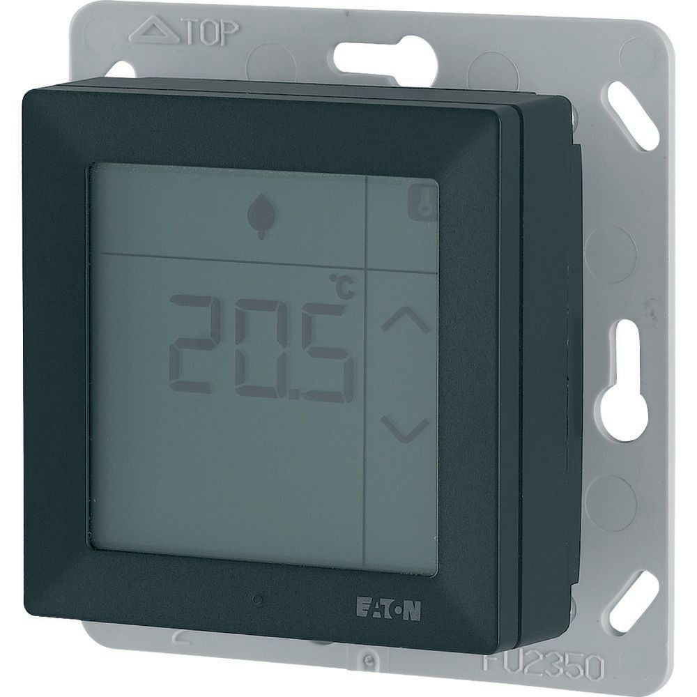 Room Controller Touch, anthrazit, eignet sich dank des Temperatur- und Feuchtesensors zur Überwachung und Steuerung des Raumklimas, entweder alleine oder zusammen mit einem intelligenten Gerät. Die Bedienung erfolgt durch das Touch-Display mit Hintergrundbeleuchtung. Der benutzerprogrammierbare Wochen-Programm-Timer und 4 Betriebsarten bieten ein Höchstmaß an Flexibilität, um die spezifischen Bedürfnisse zu erfüllen. Die Bodentemperaturregelung wird über einen optionalen externen verdrahteten Bodentemperaturfühler (PT1000) unterstützt. Zwei optionale Touch-Tasten auf dem Display stehen für die Steuerung anderer xComfort Funktionen / Aktoren zur Verfügung.