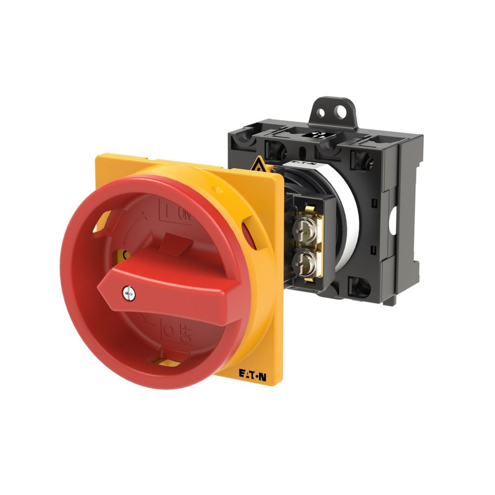 | Kurzbeschreibung | Main switch, 2 pole, 32 A, Emergency-Stop function, 90 °, Lockable in the 0 (Off) position, rear mounting |