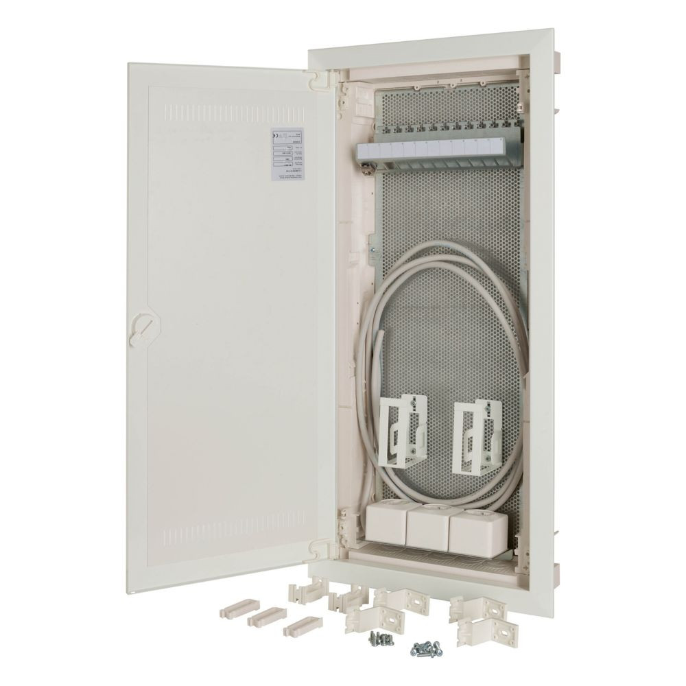 | Kurzbeschreibung | Hohlwand-Kleinverteiler; Multimedia; 4-reihig; flache Stahlblechtür WLAN |