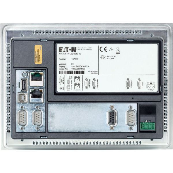 5,7 Zoll Infrarot-Touchpanel im 4:3-Format, eingebaute Einheit, Auflösung 640 x 480 Pixel, kann im Hoch- oder Querformat verwendet werden, SPS-Funktion kann mit Artikelnr. 181585 LIC-PLC-A nachgerüstet werden; entspiegeltes Verbundsicherheitsglas in Aluminiumfront; robust und leicht zu reinigen; Metallgehäuse; SD-Karten Slot; Betriebssystem: Windows Embedded Compact 7 Pro; Zwei unabhängige Ethernet-Schnittstellen zur sicheren Isolierung des übergeordneten IT-Kommunikations- und Maschinennetzwerks; andere Schnittstellen: CAN, Profibus-DP, RS232, RS485; USB-Host 2.0
