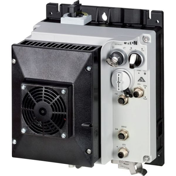 RASP5-8401A31-412R111S1_Drehzahlsteller, 8,5 A, 4 kW, Sensor-Eingang 4, 180/207 V DC, AS-Interface®, S-7.4 für 31 Teilnehmer, HAN Q4/2, mit Reparaturschalter, mit Bremswiderstand, STO (Safe Torque Off), mit Lüfter