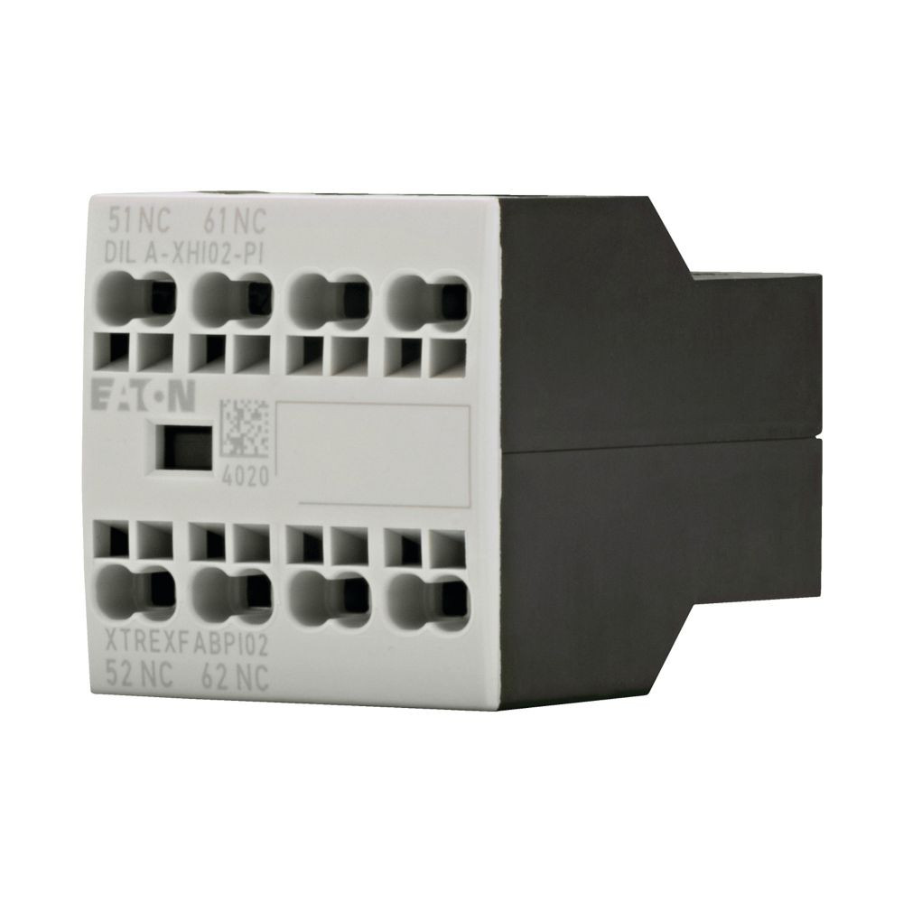 Hilfsschalterbaustein, mit zwangsgeführten Kontakten, Funktion: für Standardanwendungen, 2-polig, Anschlusstechnik: Push-in-Klemmen, Ith 16 A, Bemessungsbetriebsstrom AC-15 220 V 230 V 240 V: Ie= 4 A, Bemessungsbetriebsstrom AC-15 380 V 400 V 415 V: Ie= 4 A, Kontakte Ö = Öffner: 2 Ö, Montagetyp: Frontbefestigung, verwendbar für: DILA…-PI, DILM7…-PI, DILM9…-PI, DILM12…-PI, DILM15…-PI, DILM17…-PI, DILM25…-PI, DILM32…-PI, DILM38…-PI, DILMP20…-PI, DILMP32…-PI, DILMP45…-PI, DILM8…-PI, DILM11…-PI, DILM14…-PI, Typ: Frontale Hilfsschalterbestückung