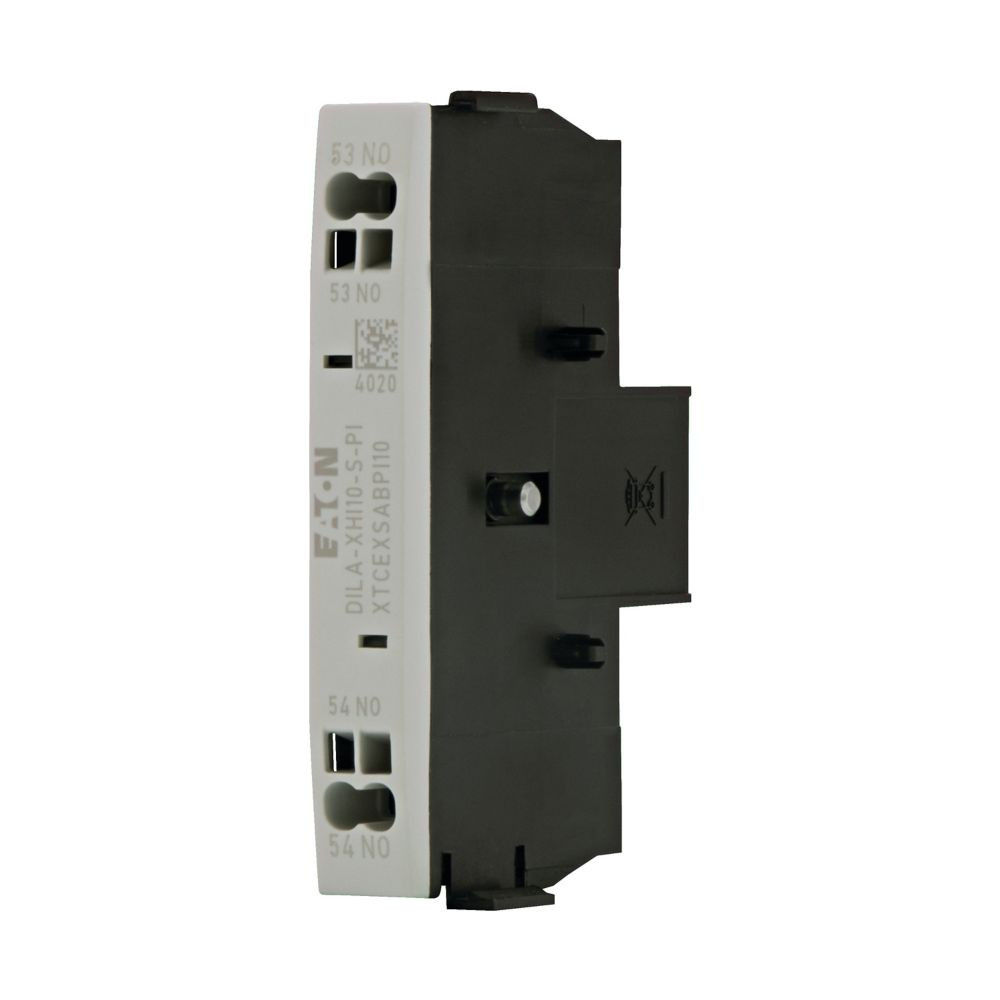 Hilfsschalterbaustein, mit zwangsgeführten Kontakten, Funktion: für Standardanwendungen, 1-polig, Anschlusstechnik: Push-in-Klemmen, Ith 16 A, Bemessungsbetriebsstrom AC-15 220 V 230 V 240 V: Ie= 4 A, Bemessungsbetriebsstrom AC-15 380 V 400 V 415 V: Ie= 4 A, Kontakte S = Schließer: 1 S, Montagetyp: Seitenanbau, verwendbar für: DILA…-PI, DILM7…-PI, DILM9…-PI, DILM12…-PI, DILM15…-PI, DILMP20…-PI, Typ: Seitliche Hilfsschalterbestückung, Hinweise: Zwangsgeführte Kontakte, nach IEC/EN 60947-5-1 Anhang L, innerhalb der Hilfsschalterbausteine