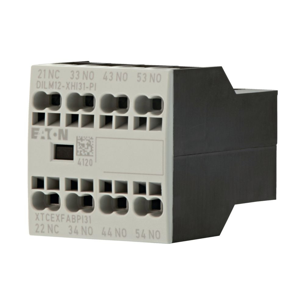Hilfsschalterbaustein, mit zwangsgeführten Kontakten, Funktion: für Standardanwendungen, 4-polig, Anschlusstechnik: Push-in-Klemmen, Ith 16 A, Bemessungsbetriebsstrom AC-15 220 V 230 V 240 V: Ie= 4 A, Bemessungsbetriebsstrom AC-15 380 V 400 V 415 V: Ie= 4 A, Kontakte S = Schließer: 3 S, Kontakte Ö = Öffner: 1 Ö, Montagetyp: Frontbefestigung, verwendbar für: DILA…-PI, DILM7…-PI, DILM9…-PI, DILM12…-PI, DILM15…-PI, DILMP20…-PI, Typ: Frontale Hilfsschalterbestückung