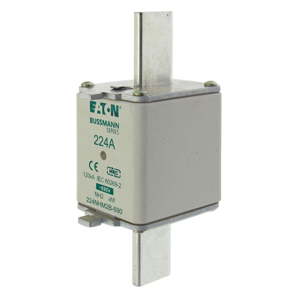 | Kurzbeschreibung | Sicherungseinsatz, Niederspannung, 224 A, AC 690 V, NH2, aM, IEC, Doppelkennmelder, spannungsführende Grifflasche |